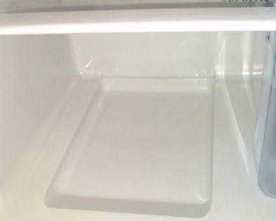 • С капельной системой размораживания. К этому типу относятся модели холодильников с так называемой «плачущей задней стенкой». Работают они следующим образом. За задней стенкой камеры расположен испаритель холодильного отделения. Во время цикла охлаждения он и задняя стенка камеры покрываются инеем. При достижении заданной температуры в холодильном отделении (обычно от +4°С до +8°С) охлаждение прекращается, и температура испарителя и задней стенки повышается, стремясь к значениям в камере. В результате, иней начинает таять, на задней стенке холодильного отделения образуются капельки воды, которые стекают в сливное отверстие внизу камеры. Этот цикл называют оттайкой. Затем влага по отводному шлангу попадает в специальный резервуар, где происходит полное ее испарение. Резервуар находится прямо над компрессором холодильника или рядом с ним.